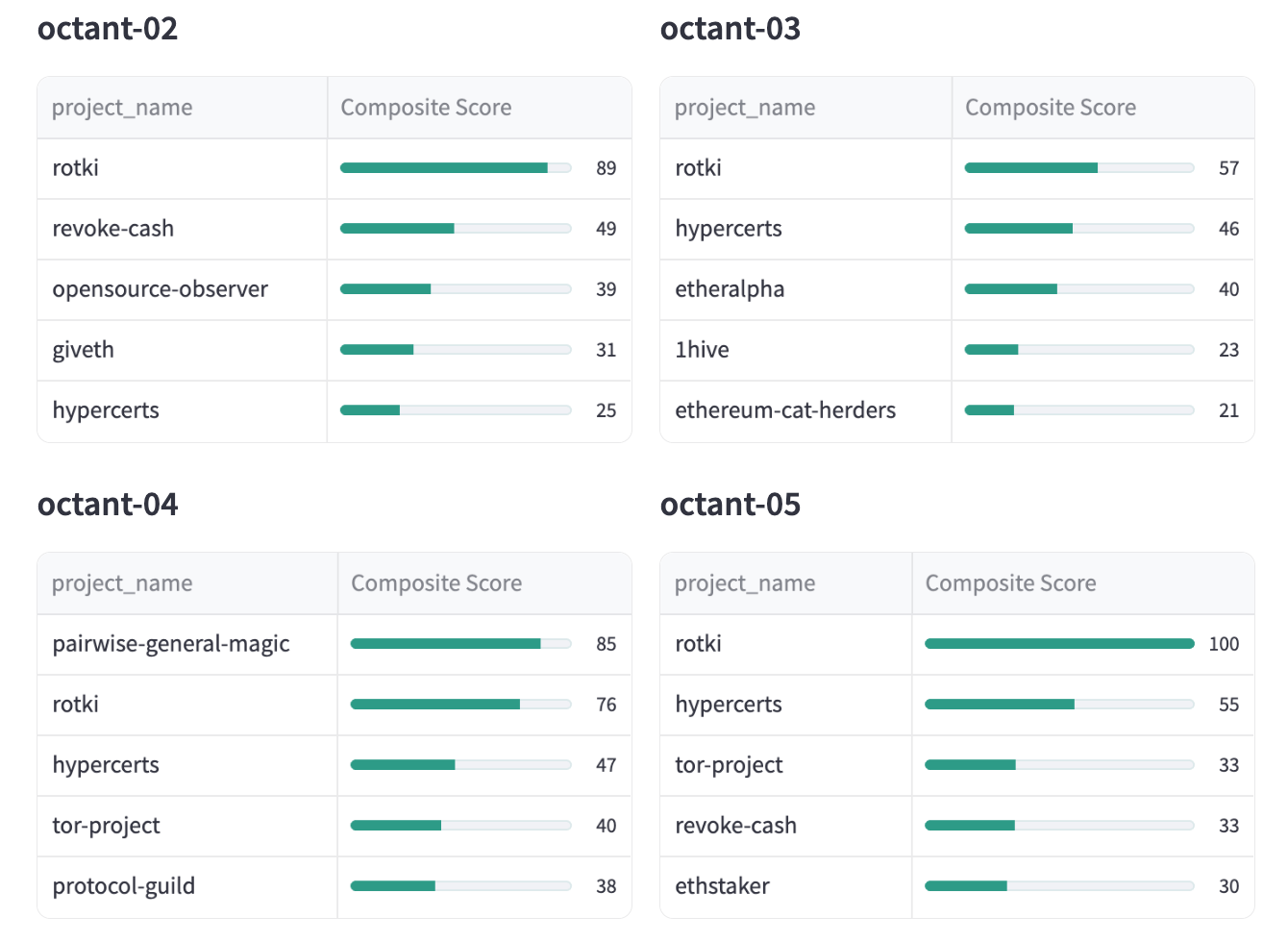 In 2024, Octant supported 47 open source software teams across four epochs. The funded projects have been diverse in scope, ranging from privacy-focused tools like Tor to ecosystem analytics platforms like L2Beat to up-and-coming organizations like the GreenPill Developer Guild.