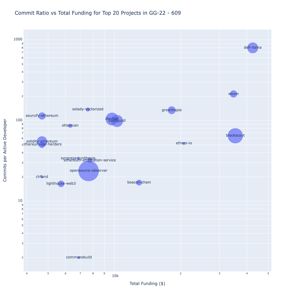 title='Commit Ratio vs Total Funding for Top 20 Projects in GG-22 - 609',