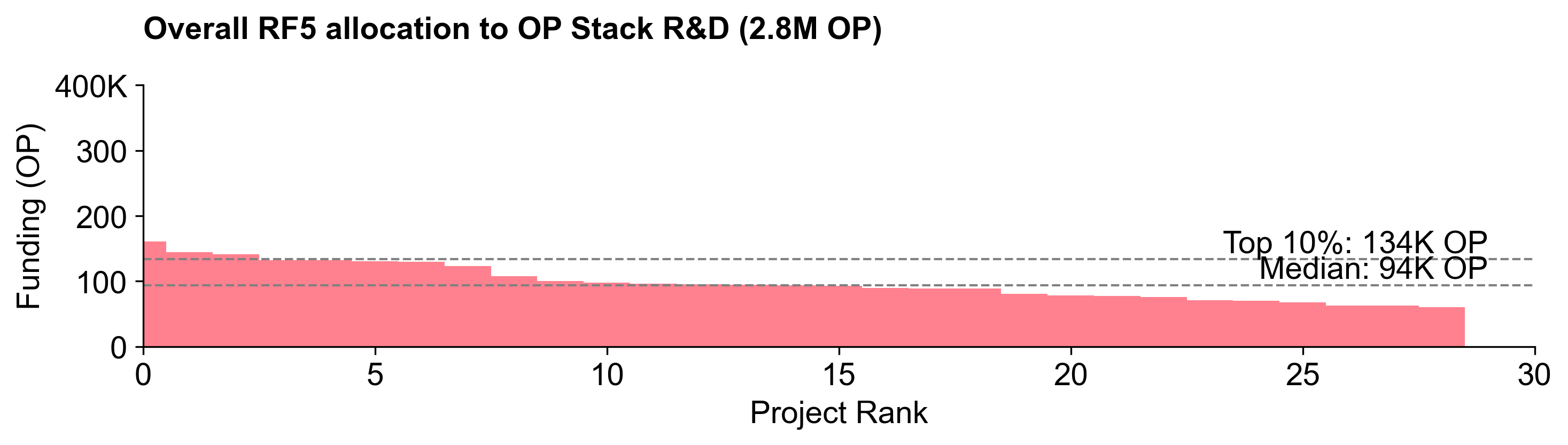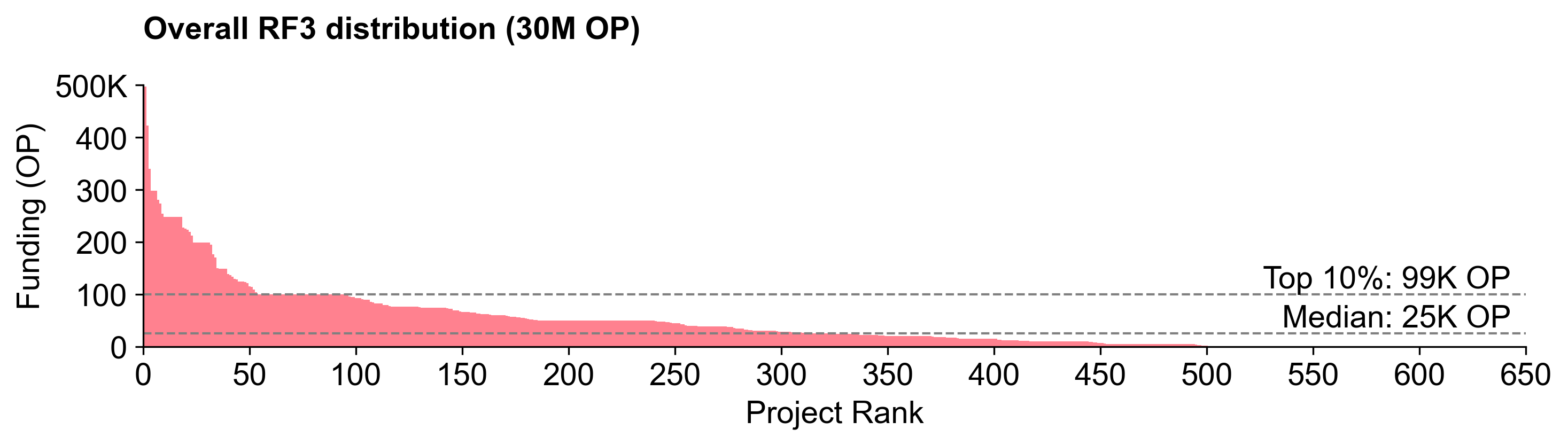 Despite this, Ethereum Core Contributions still received the largest share of the budget: 3.1M OP (~39%). It also exhibited the steepest distribution curve.