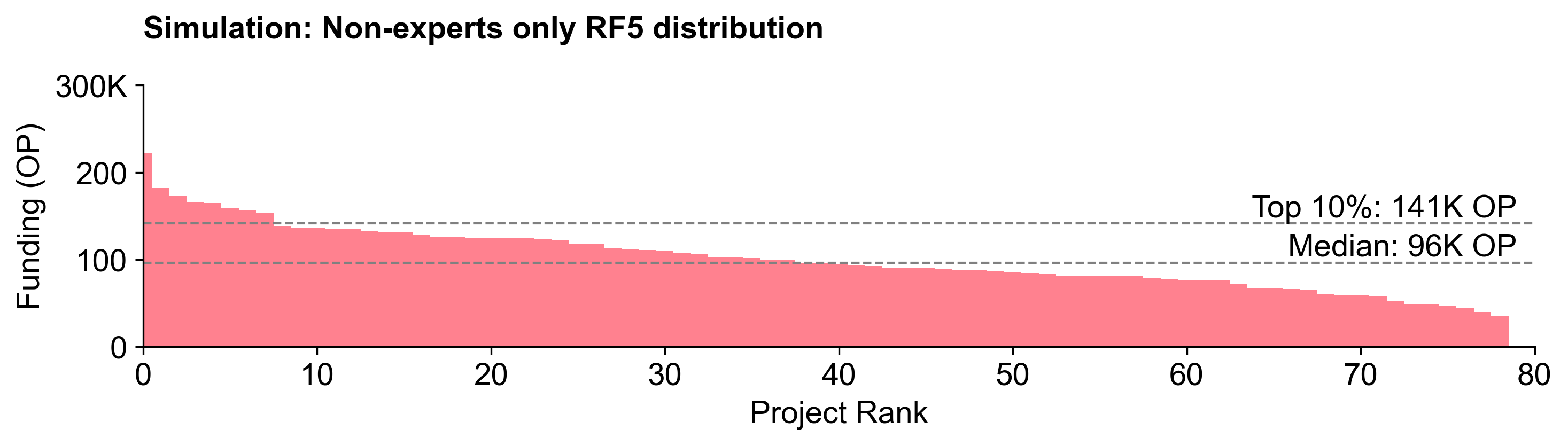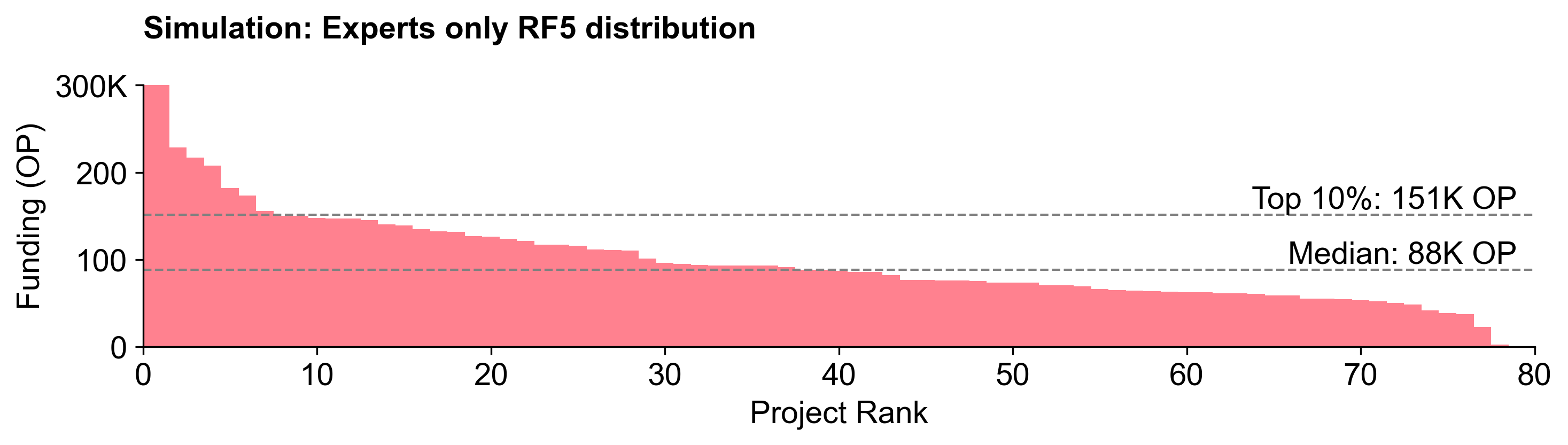 Unfortunately, in our view, the RF5 curve doesn't provide a very clear signal to builders. Instead, the Retro Funding 5 distribution is what we refer to as "peanut butter spread": flat and chunky.