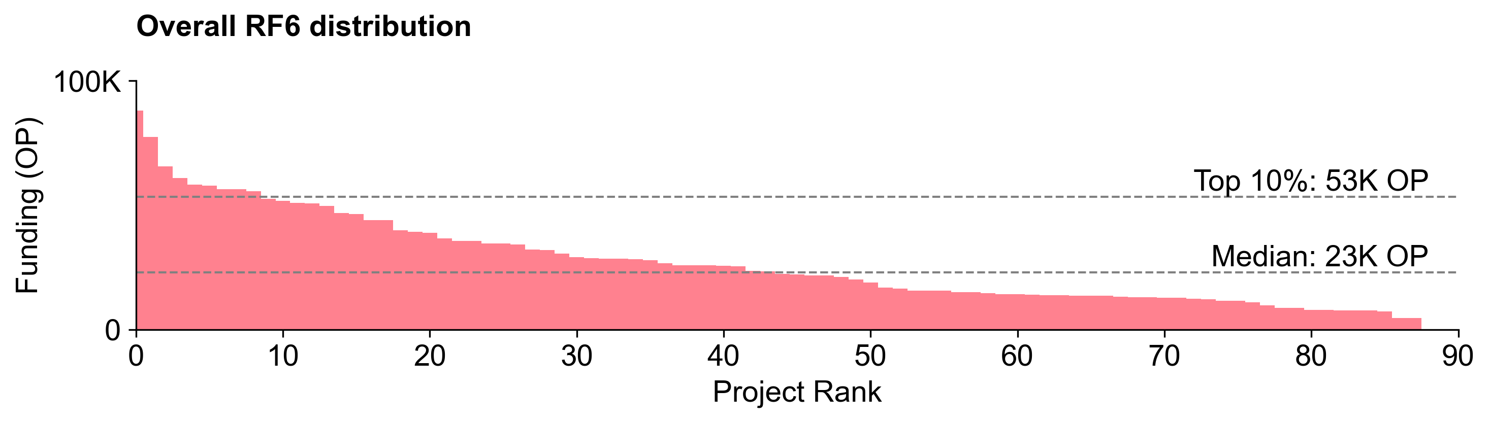 - In RF6, after doubling down on Optimism and delivering significantly more for a broader constituency, our funding decreased in absolute terms (124K OP).