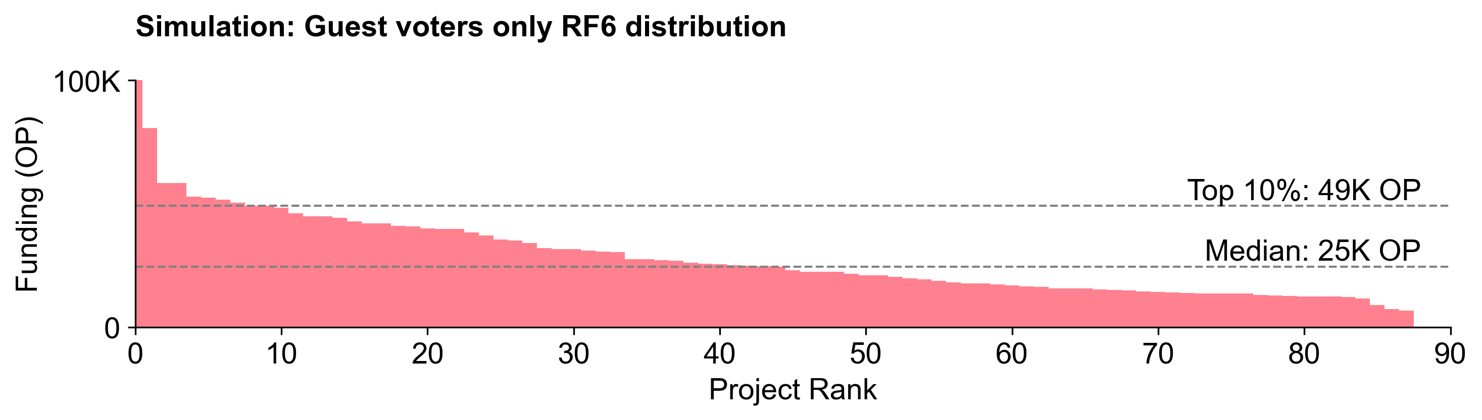 Unlike the ballots in RF5, most voters in RF6 did not vote for flat distributions. Citizens tended to vote for steeper distributions than guest voters.