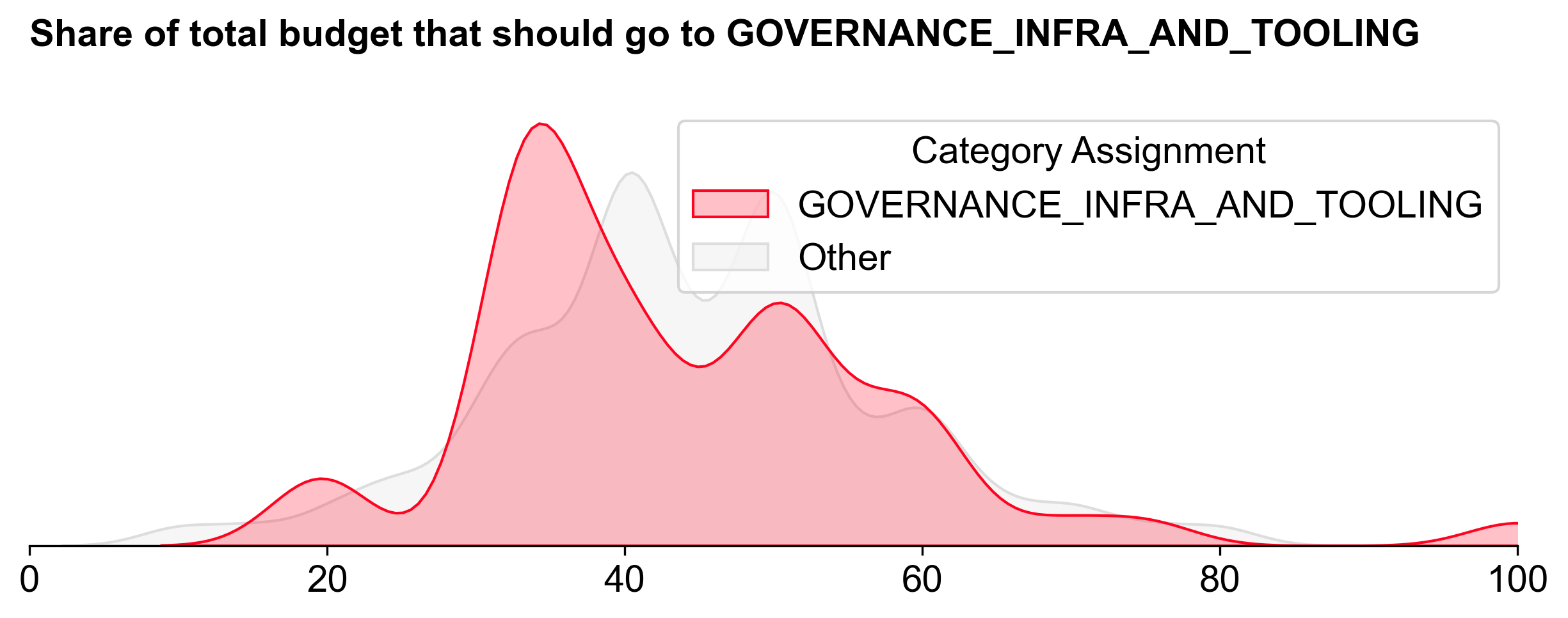 Voters assigned to Governance Infrastructure & Tooling generally allocated less budget to the category than those assigned to the other categories.