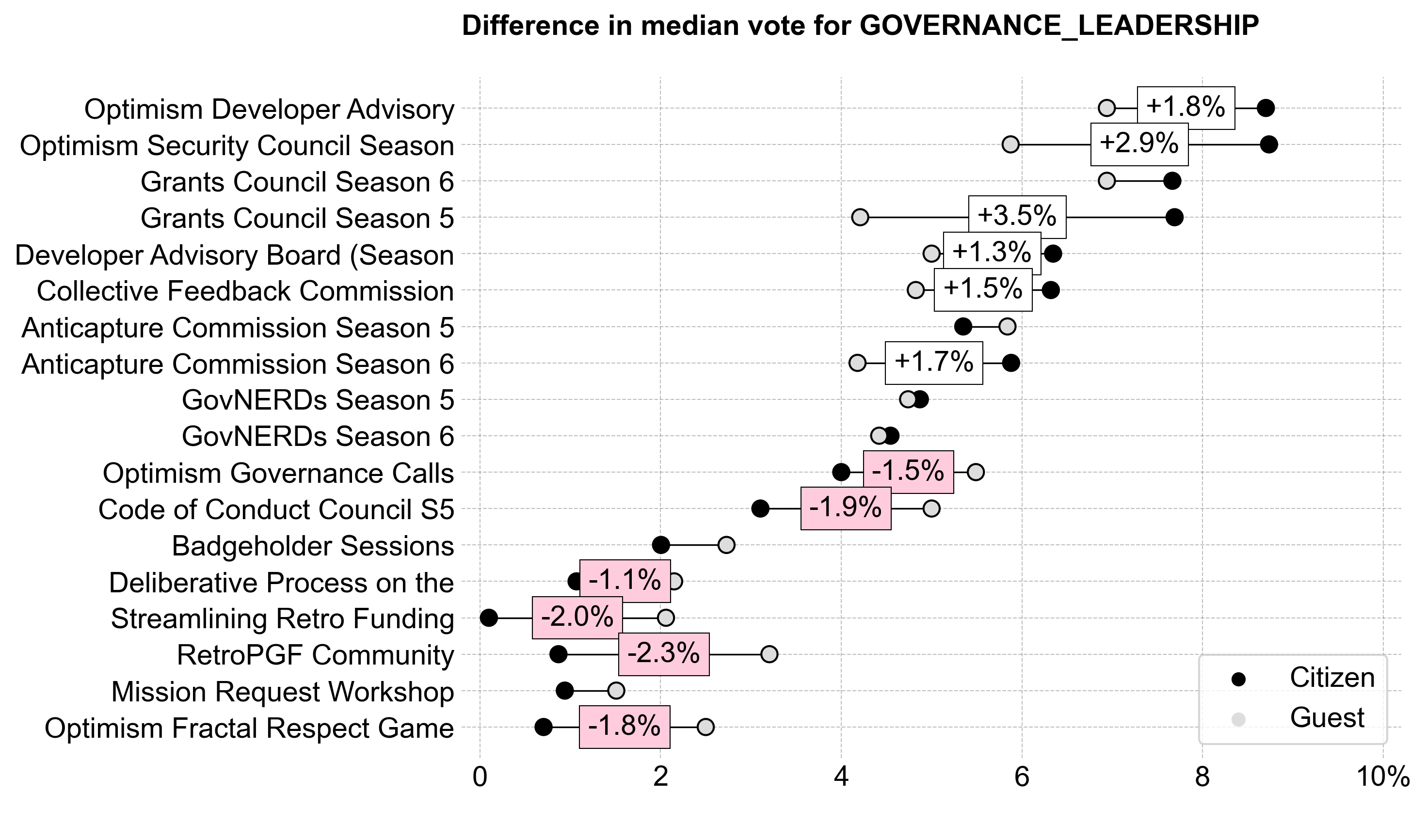 Governance Leadership ranked third overall in terms of funding, with 671K OP (~28%). There was a wide range of opinions about how much budget to allocate to this category.